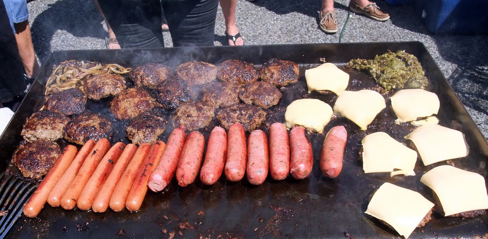 Nothing goes better with Bloody Mary’s than the good ole breakfast taco. I must admit they were darn good. It is now time to kick back and visit with our tailgate neighbors. We had lot’s of great people come visit. Bradley Walker, Dusty McGehee John Hamm, Mr. Ross Harper, Ms. Tony, Mr. & Mrs Garland, Mr. Rust, Dan Matthiesen, J Ford and Ross Barclay just to name a few. Speaking of Dan Mathiesen I need to give a shout out to him and the rest of the equipment/training staff. They do not get enough credit for everything they do along with the long/late hours they put in. Many thanks for everything that you all do. Janet's mom/dad and aunt/uncle all made their way over for the game from Houston and Dallas. All the family support is awesome! Our lunch today was going to be green chili cheese burgers, dogs and jalapeno sausage all cooked on my new old-school flattop Grill.